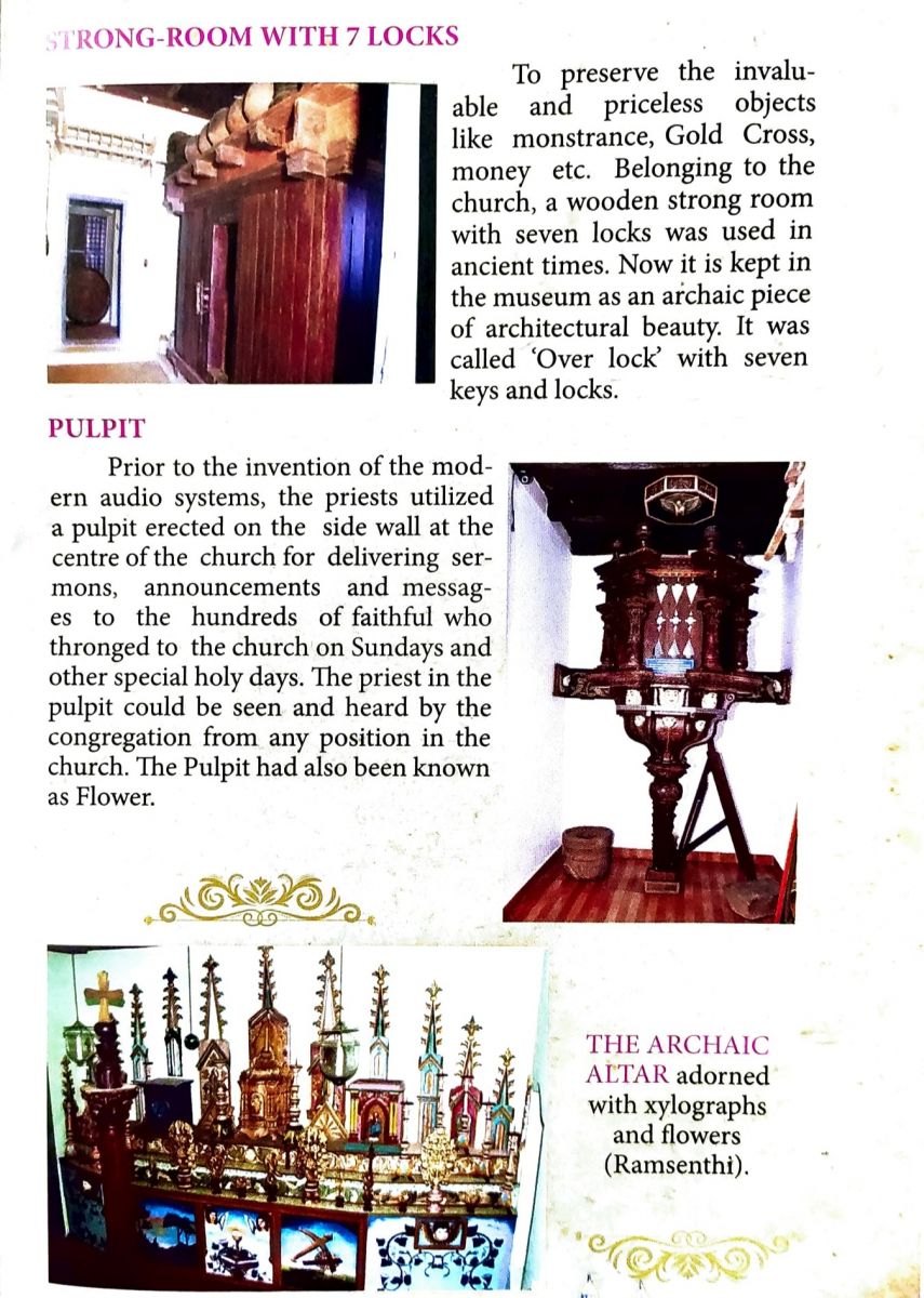 Deva Matha College maintains a heritage museum which is housed in the annex building of Major Archiepiscopal Marth Mariam Archdeacon Pilgrim Church, Kuravilangad. It has a repertoire of precious and invaluable documents substantiating the eventful history of the church. It showcases precious, rare objects of worship and honoured priceless objects and documents, highlighting the culture and heritage of the place. The museum was renovated to the present status in 2013 by the then Vicar and College Manager, Rev. Fr. Abraham Kollithanathumalayil.